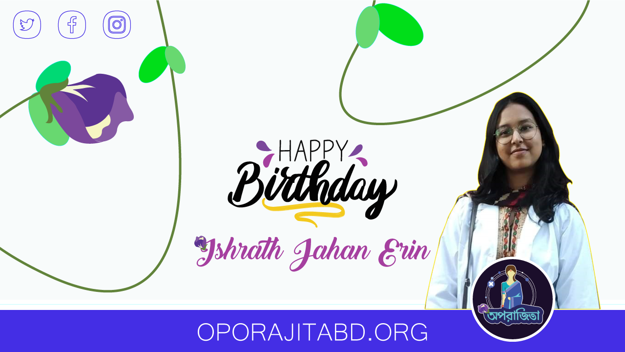 চট্টগ্রাম মেডিকেল কলেজ হাসপাতালের এম.বি.বি.এস. প্রথম বর্ষের ছাত্রী ইসরাত জাহান ইরিন। অপরাজিতার একজন নিবেদিত কর্মী। মানবতার সেবায় নিয়োজিত থাকার জন্যই মেডিকেল কলেজে পড়ার পাশাপাশি স্বেচ্ছাসেবাকে বেছে নিয়েছে সে। View More