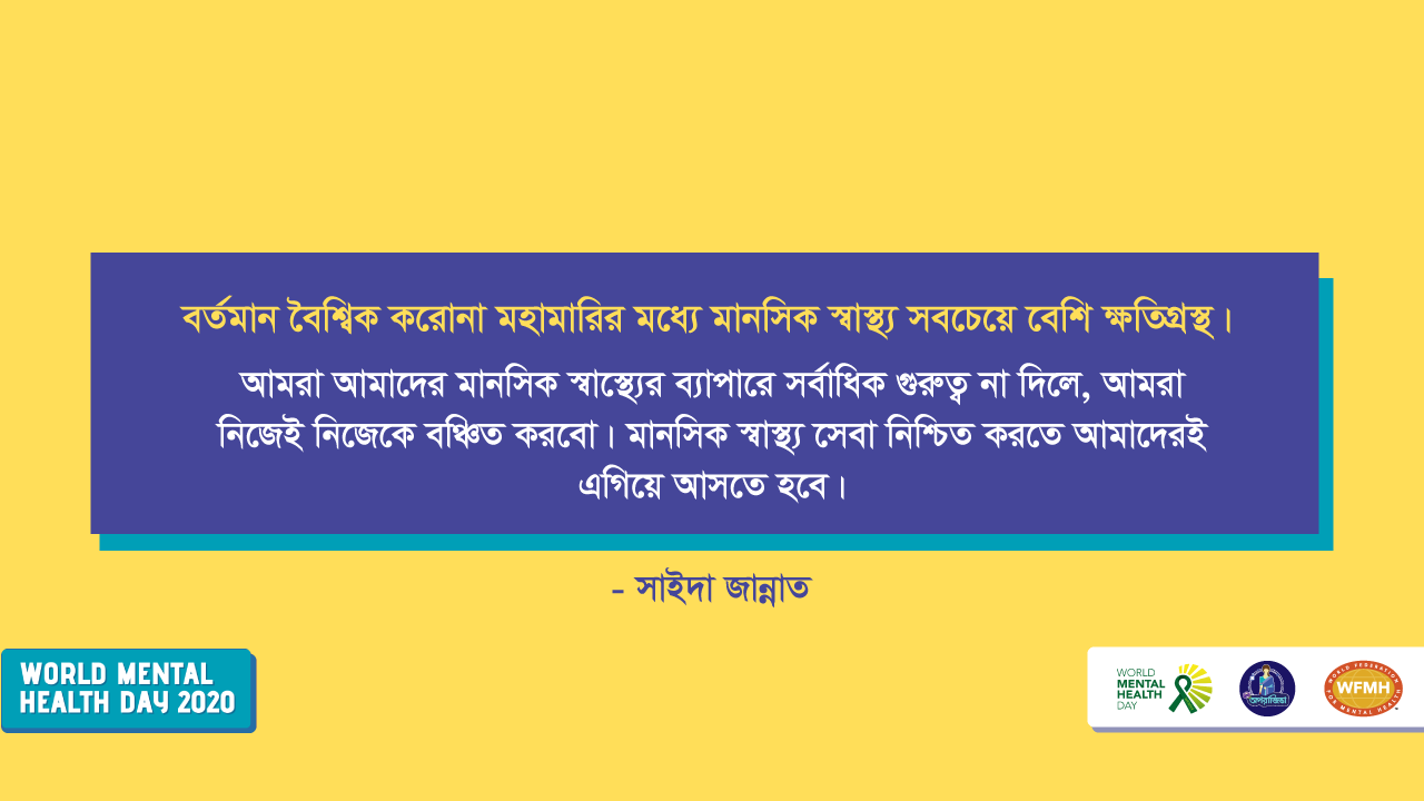 বিশ্ব মানসিক স্বাস্থ্য দিবস ২০২০