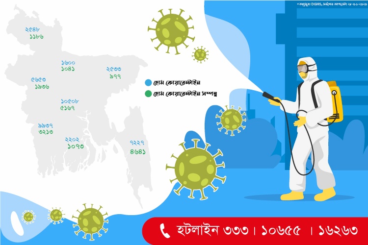 COVID-19 এ দেশব্যাপী হোম কোয়ারেন্টাইন ও হোম কোয়ারেন্টাইন সম্পন্ন ব্যক্তিদের বর্তমান চিত্র।