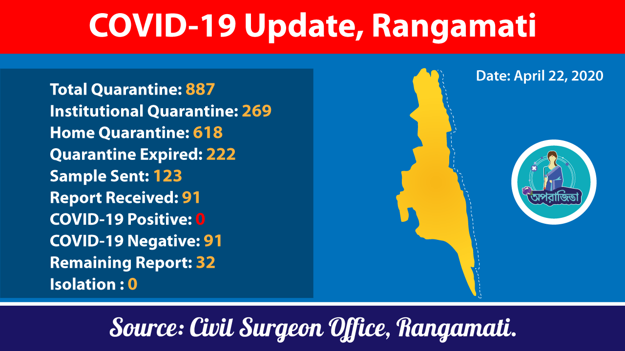 রাঙামাটি জেলার সর্বশেষ করোনা পরিস্থিতি (২২ এপ্রিল,২০২০)