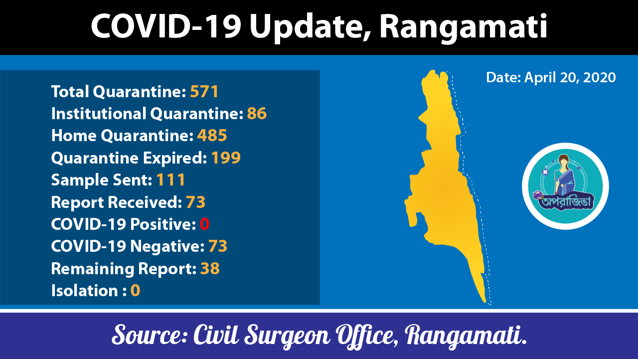 রাঙামাটি জেলার সর্বশেষ করোনা পরিস্থিতি (২০ এপ্রিল,২০২০)