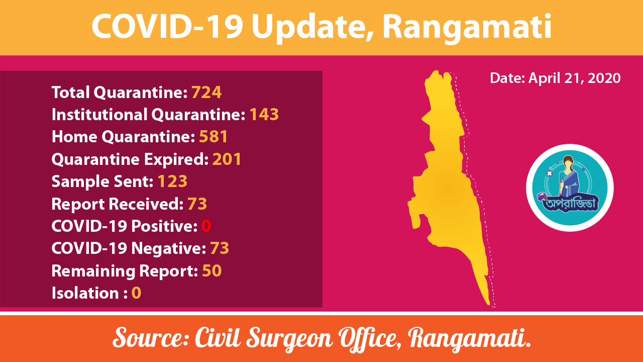 রাঙামাটি জেলার সর্বশেষ করোনা পরিস্থিতি (২১ এপ্রিল,২০২০)